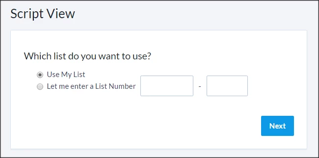 Script View allows your volunteers or staff to gather contact data by following a pre-determined Script. This is often used when doing outreach to a smaller segment of supporters than you would normally reach with a Virtual Phone Bank or other canvassing efforts.