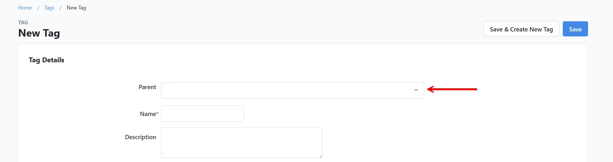 Note: If this should be a child of another tag, select the parent in the 'Parent' field.