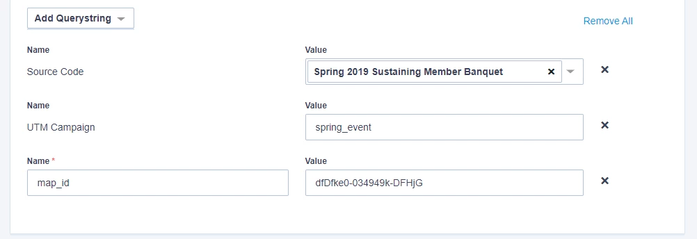 Query strings make it easy to track responses and analyze your email performance. Using a query string, you can automatically apply source codes, Market Source Codes, or other identifiers whenever someone clicks the link to fill in your form.
