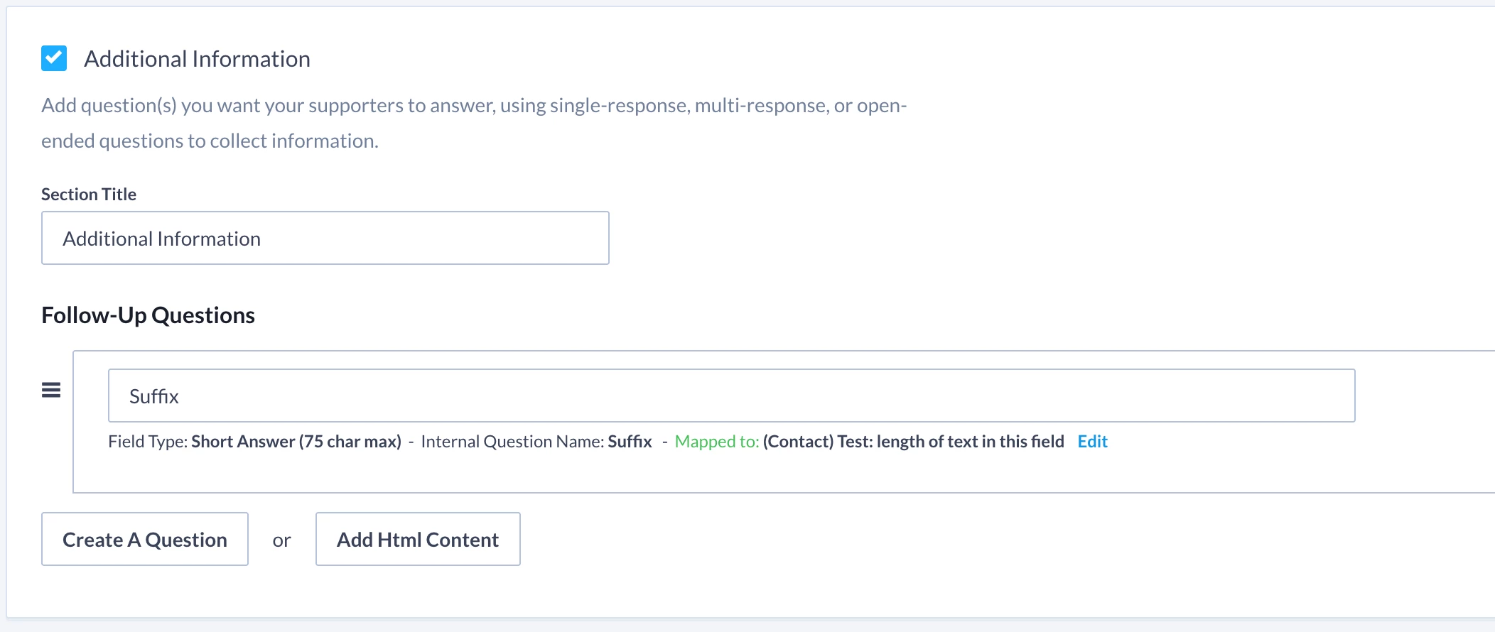 We currently have a custom field for “longer suffix” that bypasses the 5 character suffix limit - but that doesn’t integrate with online forms. Curious what ways others have approached this?