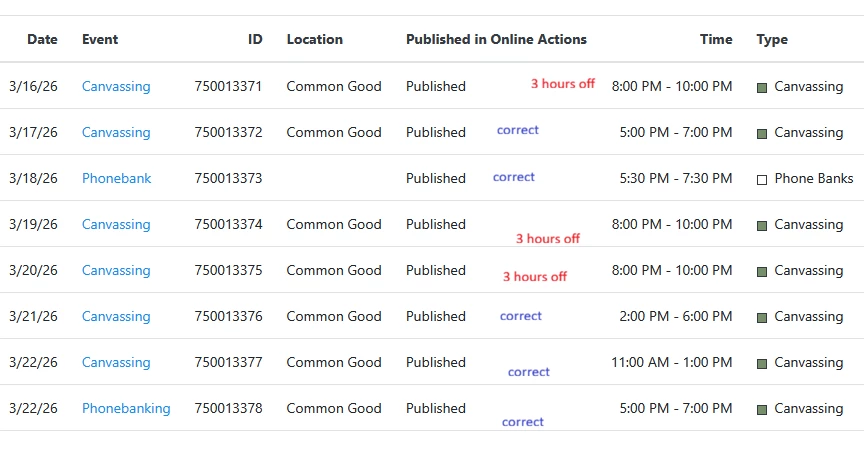 When I add new events and use merge form language (reusables), sometimes the event is listed 3 hours later than intended. It doesn’t happen every time, but often. Using the same template - and where no changes to the reuseables - some events are the correct time, others are not.