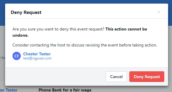 Note that denying the request will NOT trigger an email to the host, and the action cannot be undone.