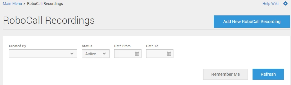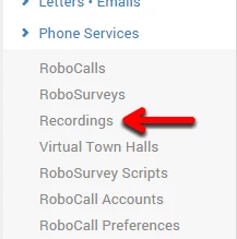 Once on the RoboCall Recordings List Page, click Add New Recording (this can also be done in the recording tab in the RoboCall wizard). You may also create new recordings by clicking New Recording for a specific element while building a RoboSurvey script.