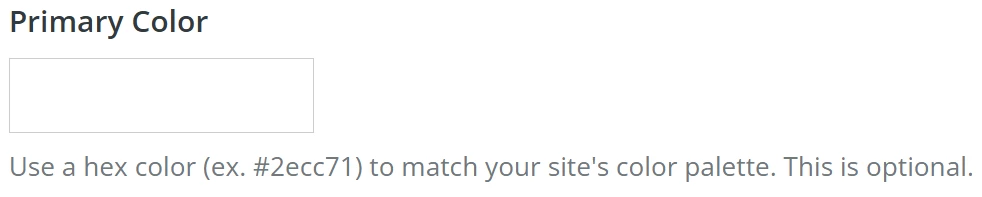 Primary Color: enter the 6-digit hex code to match your form's branding with your organization's