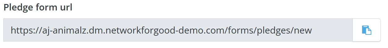 Pledge form url: an automatically generated URL you can share with your contacts so they can easily access your pledge form