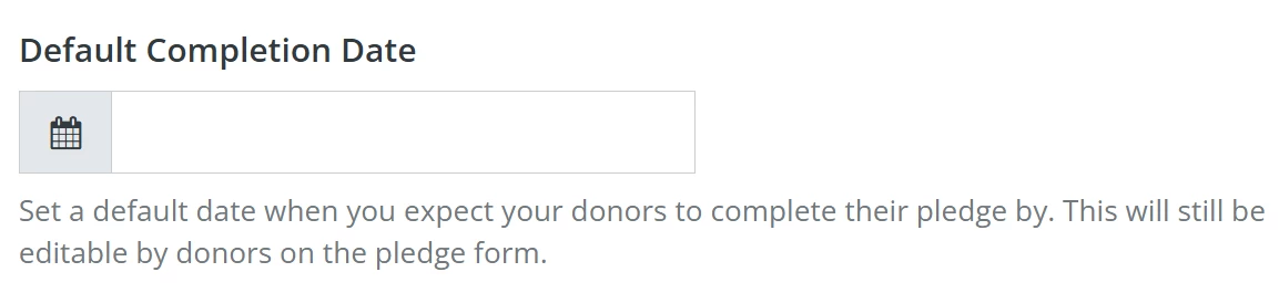 Default Completion Date: the date selected in this field will appear on your form to let donors know when they should expect to complete their pledge