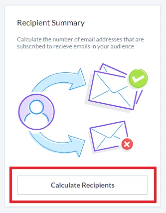 After building your audience, calculate your recipients in order to verify that the counts are as expected.