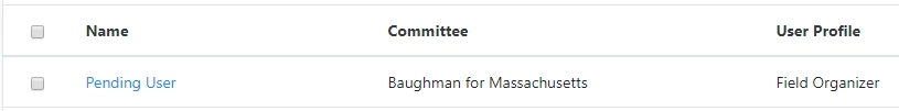 Once the email has been sent, users will appear as 'Pending User' until they've logged in.