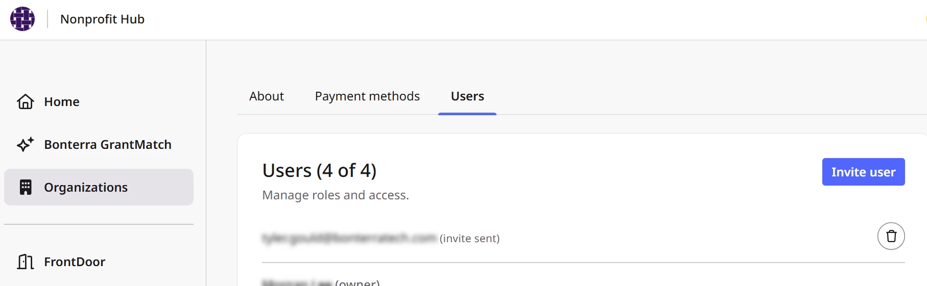 The Users section of the Organization Profile in the Bonterra Nonprofit Hub allows organizations to view and manage who has access to their profile. This area is designed to support collaboration while maintaining secure, controlled access to organizational information and participation in supported company programs.